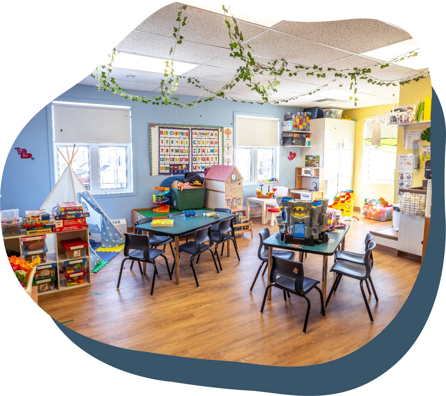 Our bright, safe, and child-friendly facilities provide an ideal setting for playing, learning, and interacting. Both indoors and outdoors, each space is designed to promote sensory development, exploration, and the joy of learning.